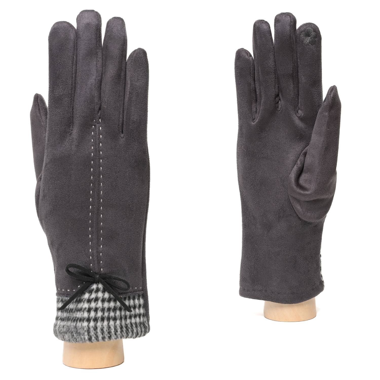 Современные женские перчатки итальянского бренда FABRETTI из экозамши серого цвета. Изнаночная сторона дополнена коротким, но теплым экомехом.