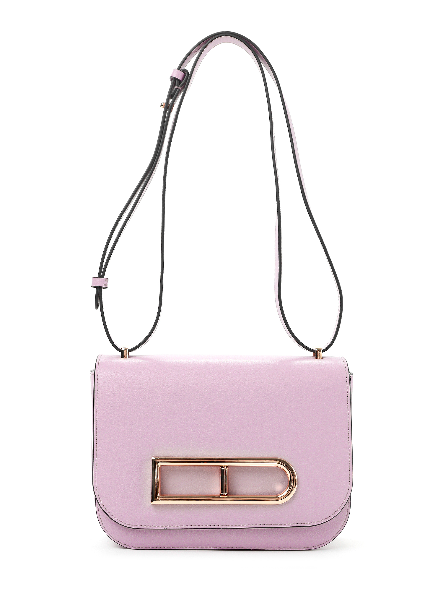 Эффектная женская сумка кросс-боди итальянского бренда FABRETTI из натуральной кожи кальф нежного светло-розового цвета с гладкой фактурой. Чтобы подчеркнуть форму сумки, срезы швов отделаны контрастным черным кантом.