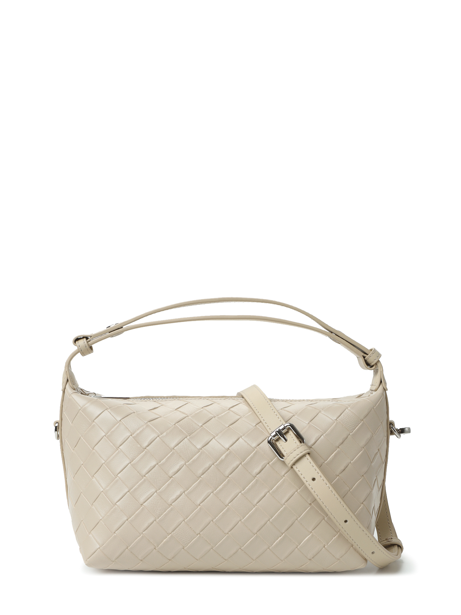Единственное отделение закрывается на металлическую молнию, внутри один открытый карман и один на молнии. Модель оснащена двумя ремнями – широким несъемным плечевым ремнем, регулируемым кнопкой и съемным ремешком на карабинах (длина ок. 135 см). Цвет фурнитуры - серебро.