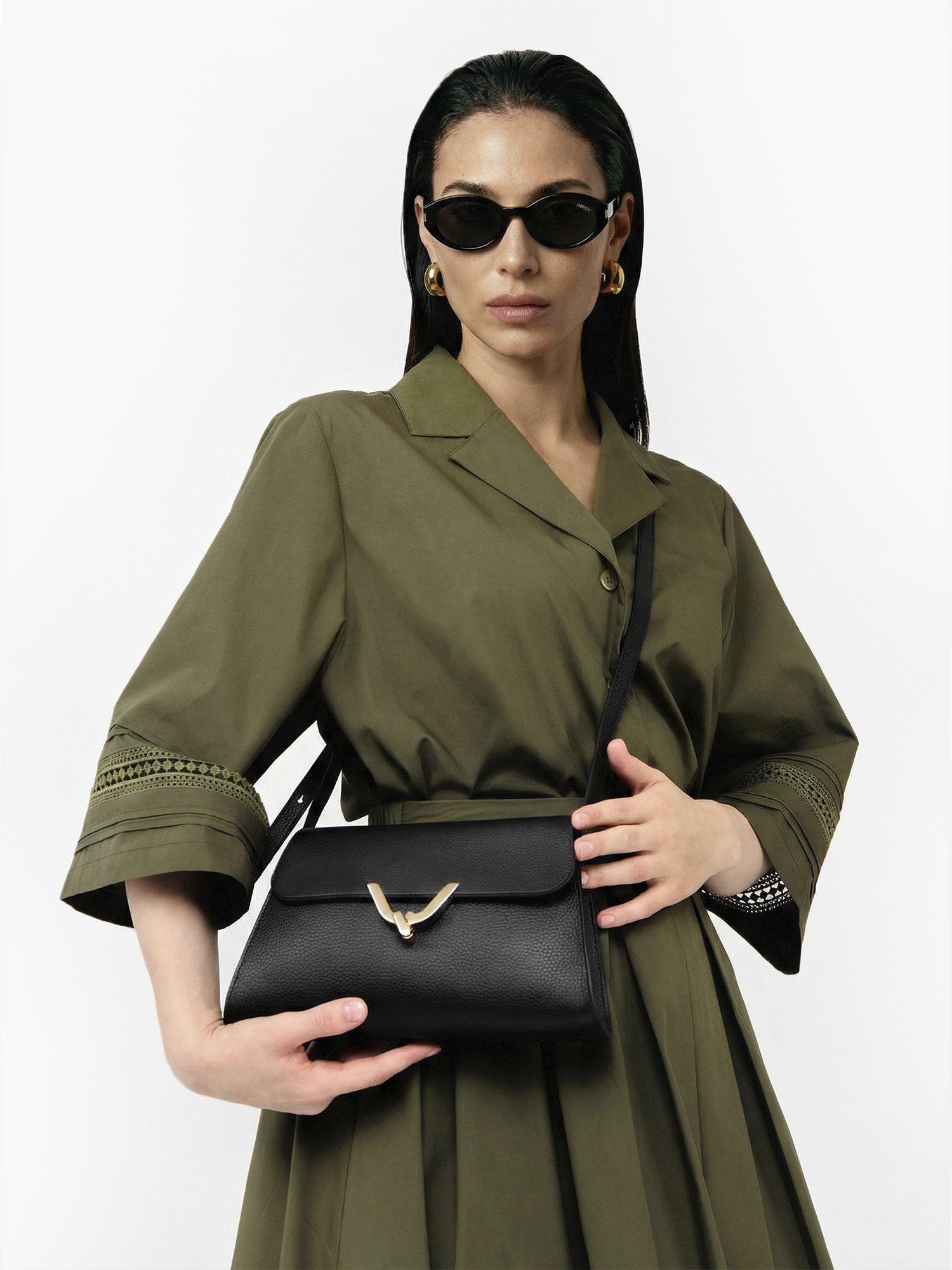 Хаки - универсальный цвет, который отлично подходит для лета. Он сочетается практически со всей натуральной гаммой и прекрасно смотрится на загорелой коже.