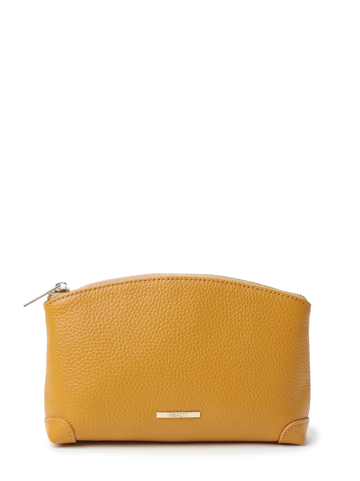 Женская косметичка итальянского бренда FABRETTI из натуральной кожи с крупнозернистой фактурой в эффектном оранжево-желтом «горчичном» оттенке.