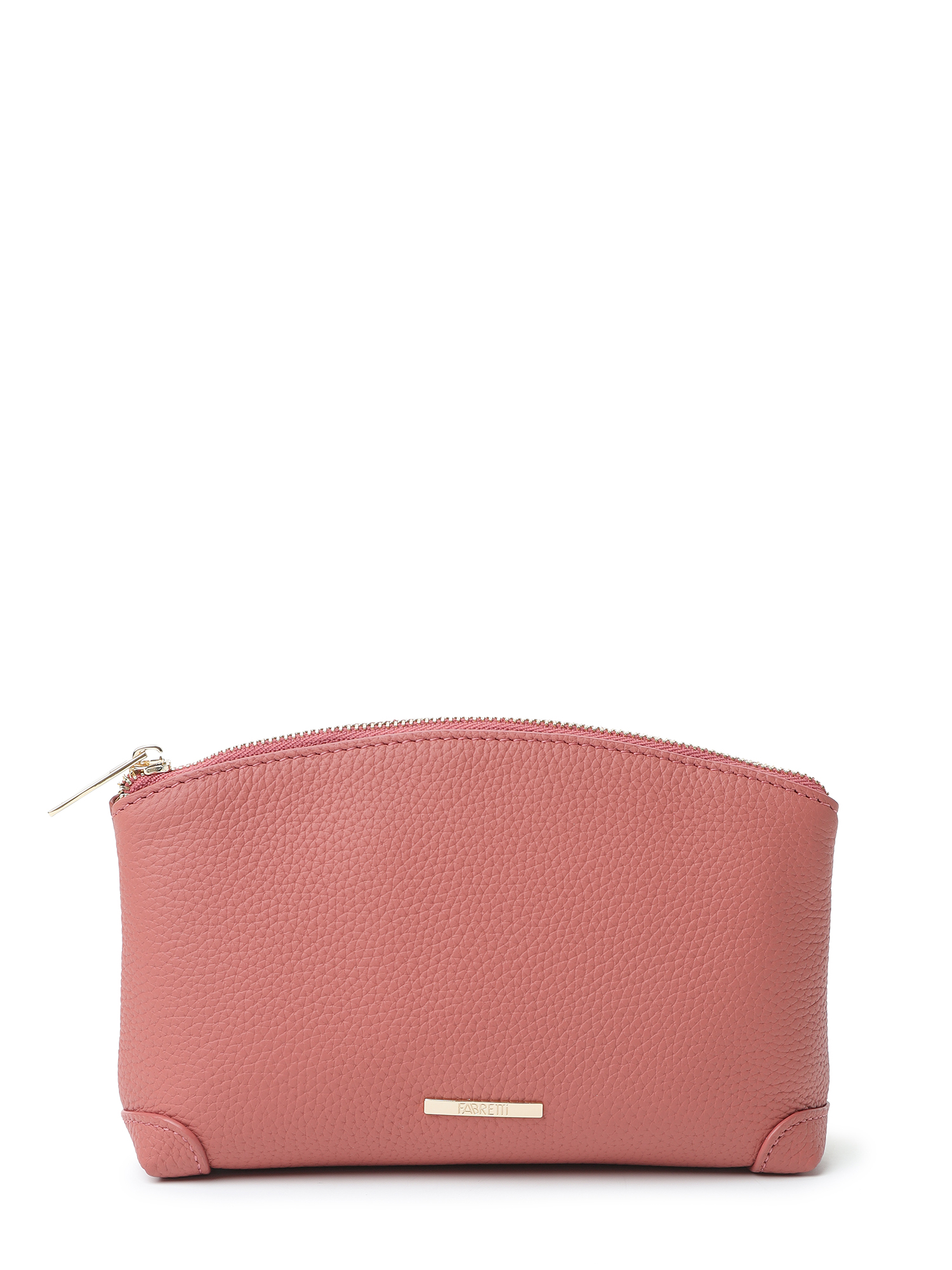 Женская косметичка итальянского бренда FABRETTI из натуральной кожи с крупнозернистой фактурой в трендовом темно-розовом оттенке «пыльная роза».