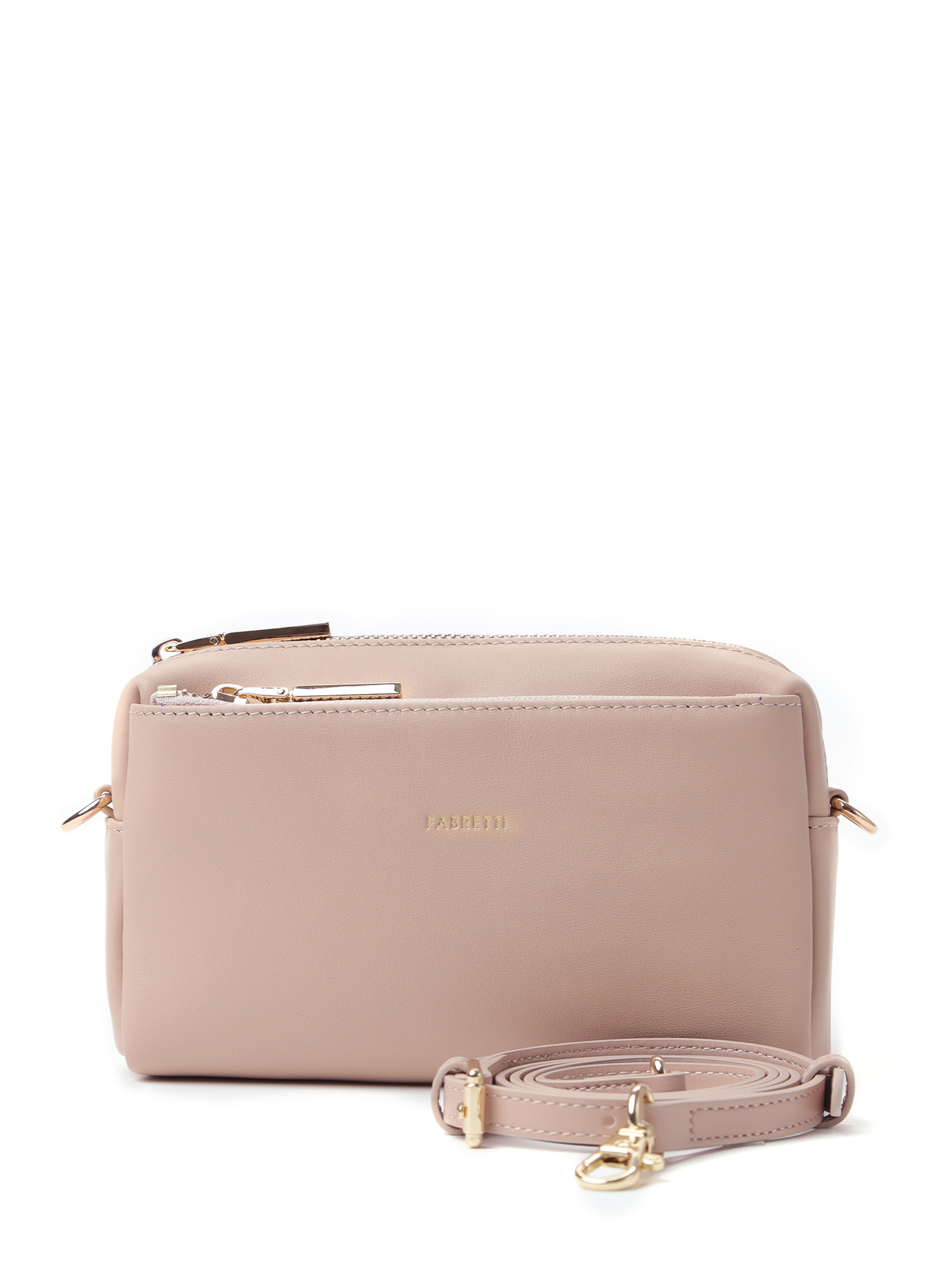 Компактная женская сумка кросс-боди итальянского бренда FABRETTI выполнена из натуральной мелкозернистой кожи наппа в «нюдовом» бежевом оттенке.