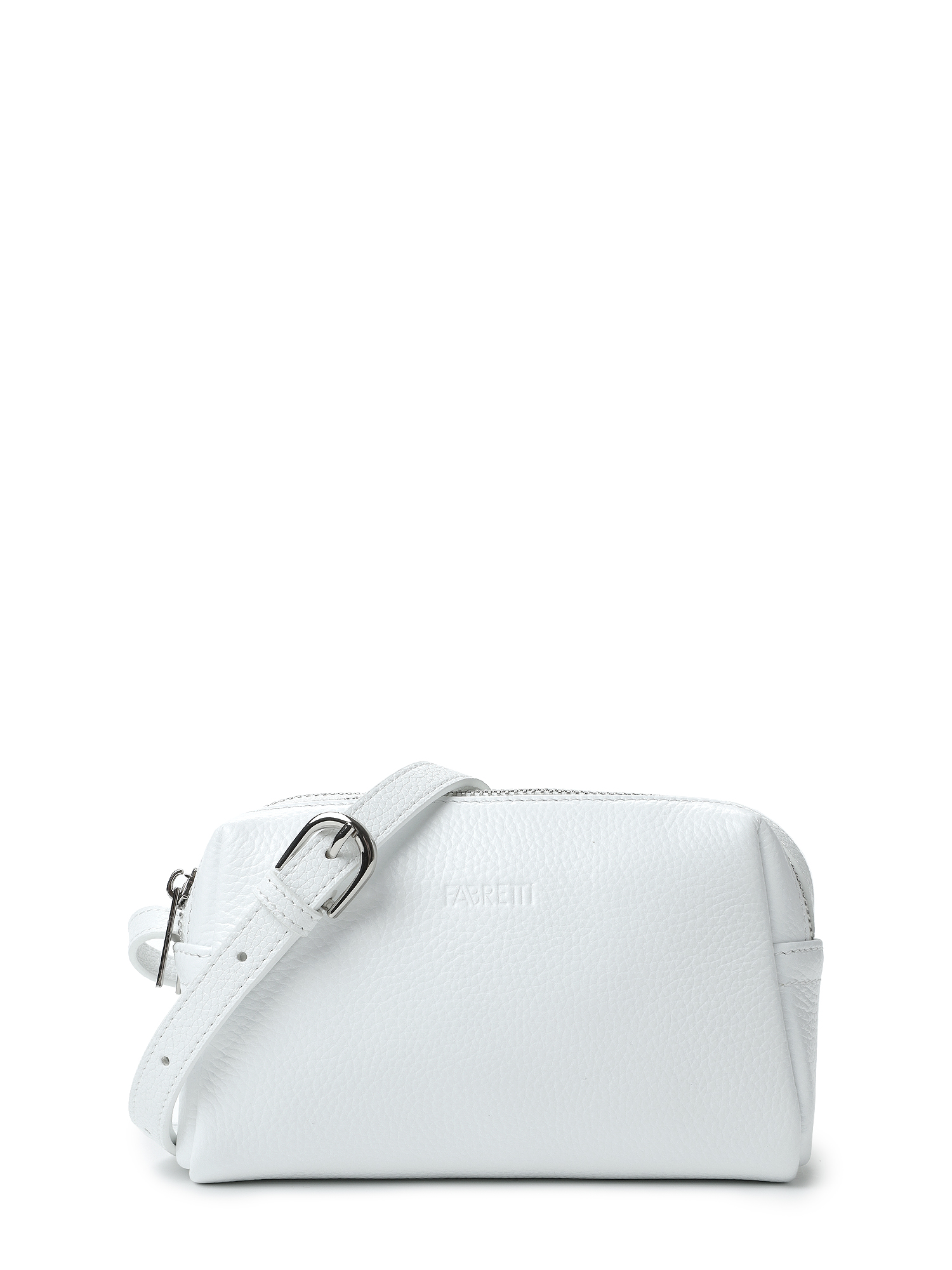 Лаконичная женская сумка кросс-боди итальянского бренда FABRETTI выполнена из натуральной крупнозернистой кожи в классическом холодном белом цвете.