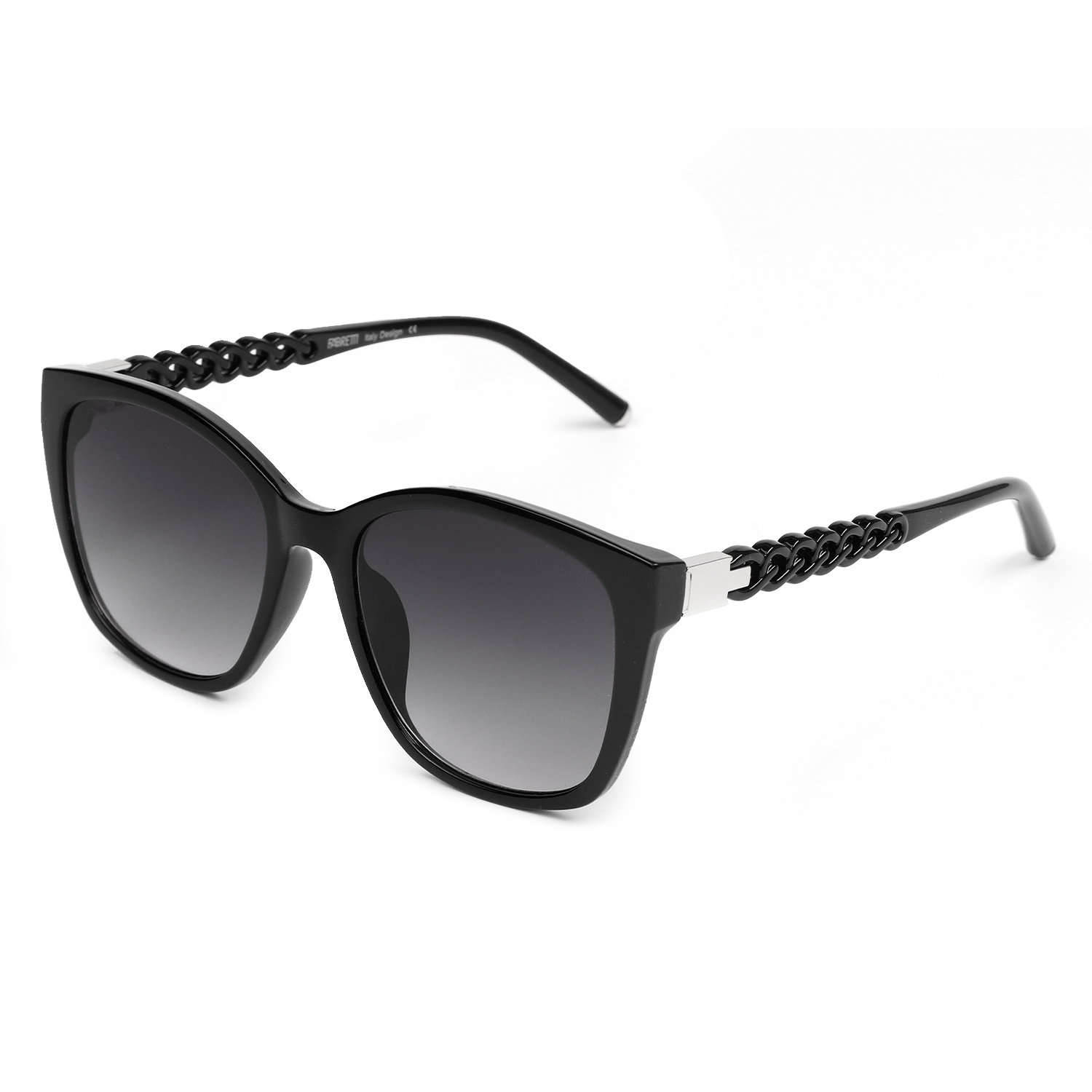 Изящные солнцезащитные очки итальянского бренда FABRETTI в черной оправе в форме "кошачий глаз". Градиентные серо-голубые линзы позволяют видеть одинаково хорошо как в помещении, так и на солнечной улице.