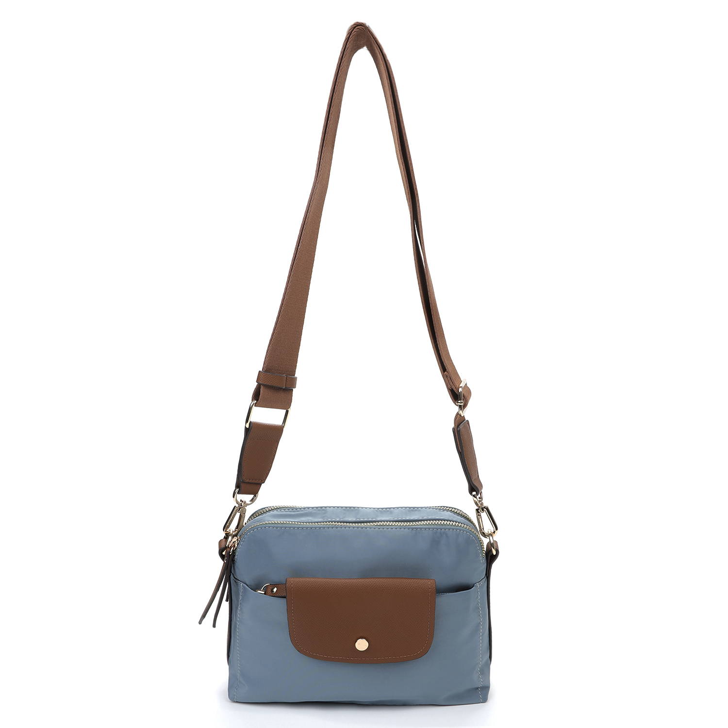 Компактная и удобная женская сумка кросс-боди из коллекции итальянского бренда FABRETTI в трендовом серо-голубом оттенке «Голландский канал». Удобная модель в трендовом дизайне для повседневного городского образа.