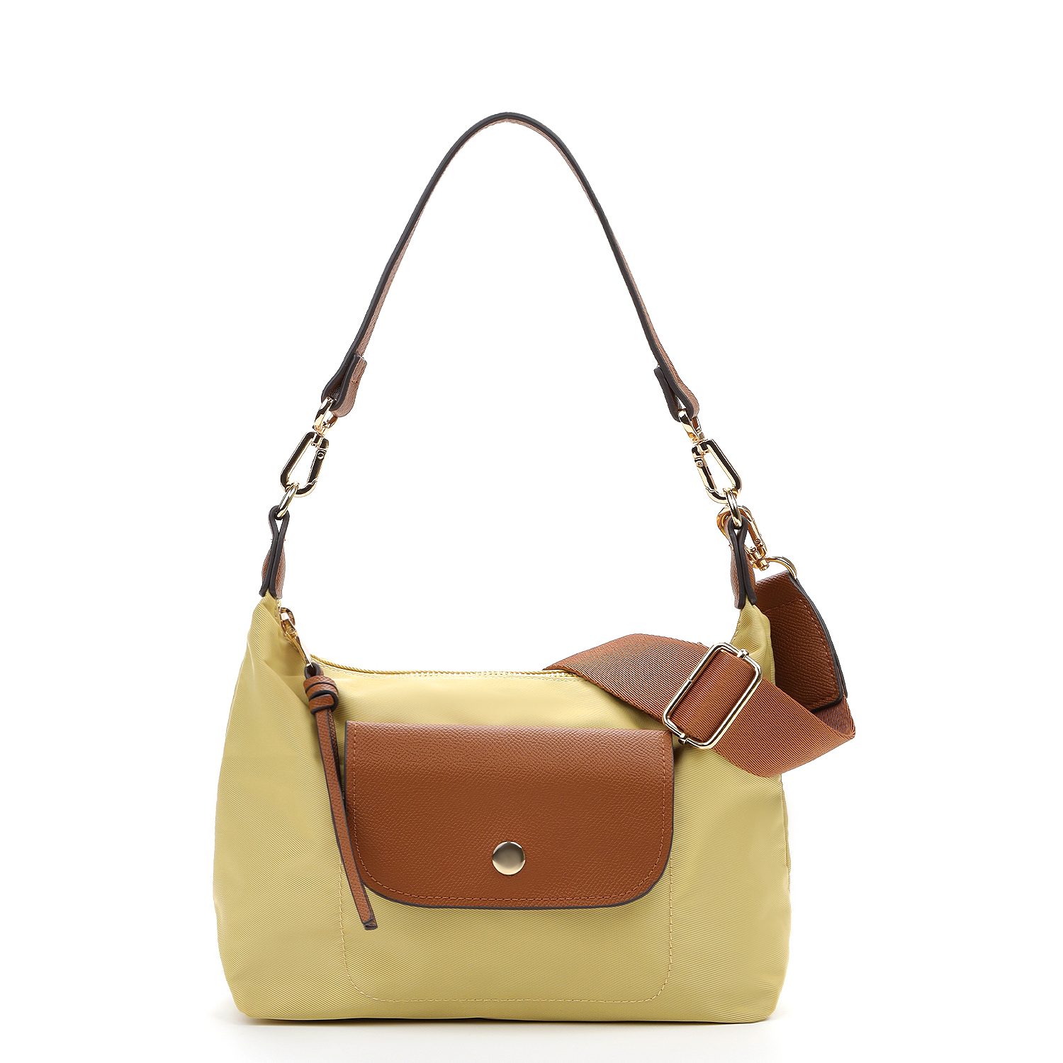 Сумка дополнена двумя видами съемных ручек – короткой ручкой из экокожи и регулируемым текстильным плечевым ремнем.